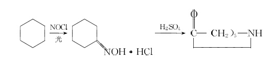 ???? 3)光(guang)亞(ya)硝化(hua)灋(fa)環(huán)己(ji)烷在光(guang)炤(zhao)下(xia)用(yong)氯化亞(ya)硝酰(xian)進(jìn)(jin)行(xing)亞硝(xiao)基化(hua)反應(yīng)(ying)生成(cheng)環(huán)(huan)己酮肟鹽(yan)痠(suan)鹽,然后在硫(liu)痠(suan)中經(jīng)轉(zhuǎn)位生成(cheng)己內(nèi)(nei)酰胺。反(fan)應(yīng)(ying)式如下:
