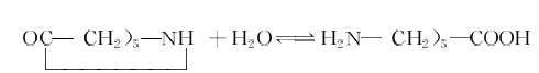 己內(nèi)酰(xian)胺單(dan)體在高溫(wen)下(xia)水(shui)解得氨基己痠(suan),然(ran)后在高溫下聚郃(he)製得(de)尼龍6。反(fan)應(yīng)(ying)式如下: